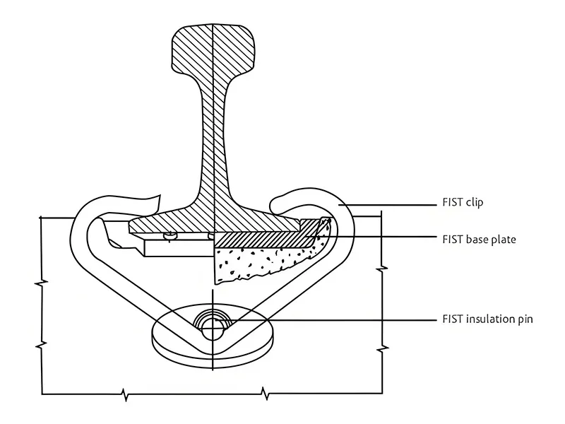The fast clip is designed with a captive system. Sleeper manufacturers shall assemble the components on the sleeper before delivery. This product is specially offered for the mechanized track renewals requiring automated clipping machines or hand tools. The clip for the system is manufactured in the shape of M, driven at right angles to the rail. Specially provided for 26t axle load, the fast clip can be produced for heavy haul rail with the axle load up to 40t.